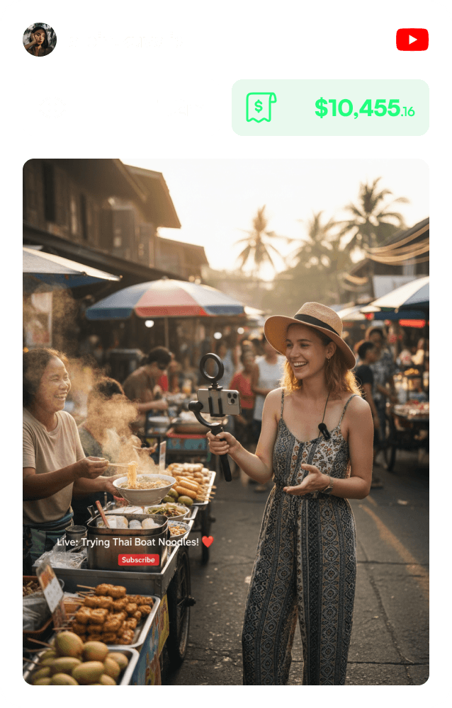 Once verified, your earnings are calculated based on views. Cash out anytime.